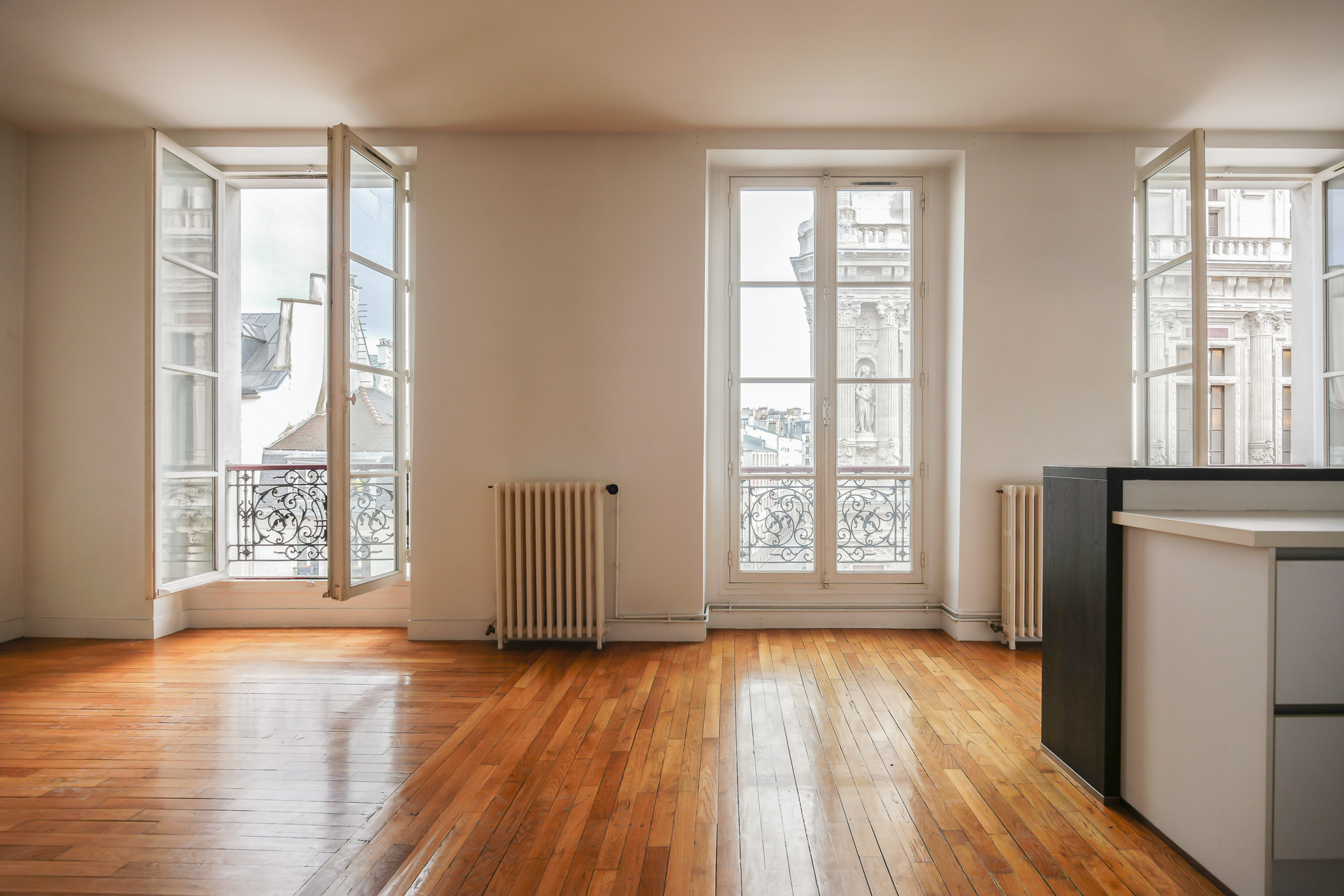 APPARTEMENT ANCIEN VUE DÉGAGÉE SUR LA MAIRIE DU 10E ENTRÉE PIÈCE DE VIE CUISINE OUVERTE 1 CHAMBRE DE 13.94 M2 AVEC SALLE DE BAINS ET WC DRESSING 2 CHAMBRES SUR COUR DE 11.85 M2 ET 12.02 M2 1 SALLE DE DOUCHE TOILETTES INDÉPENDANTES