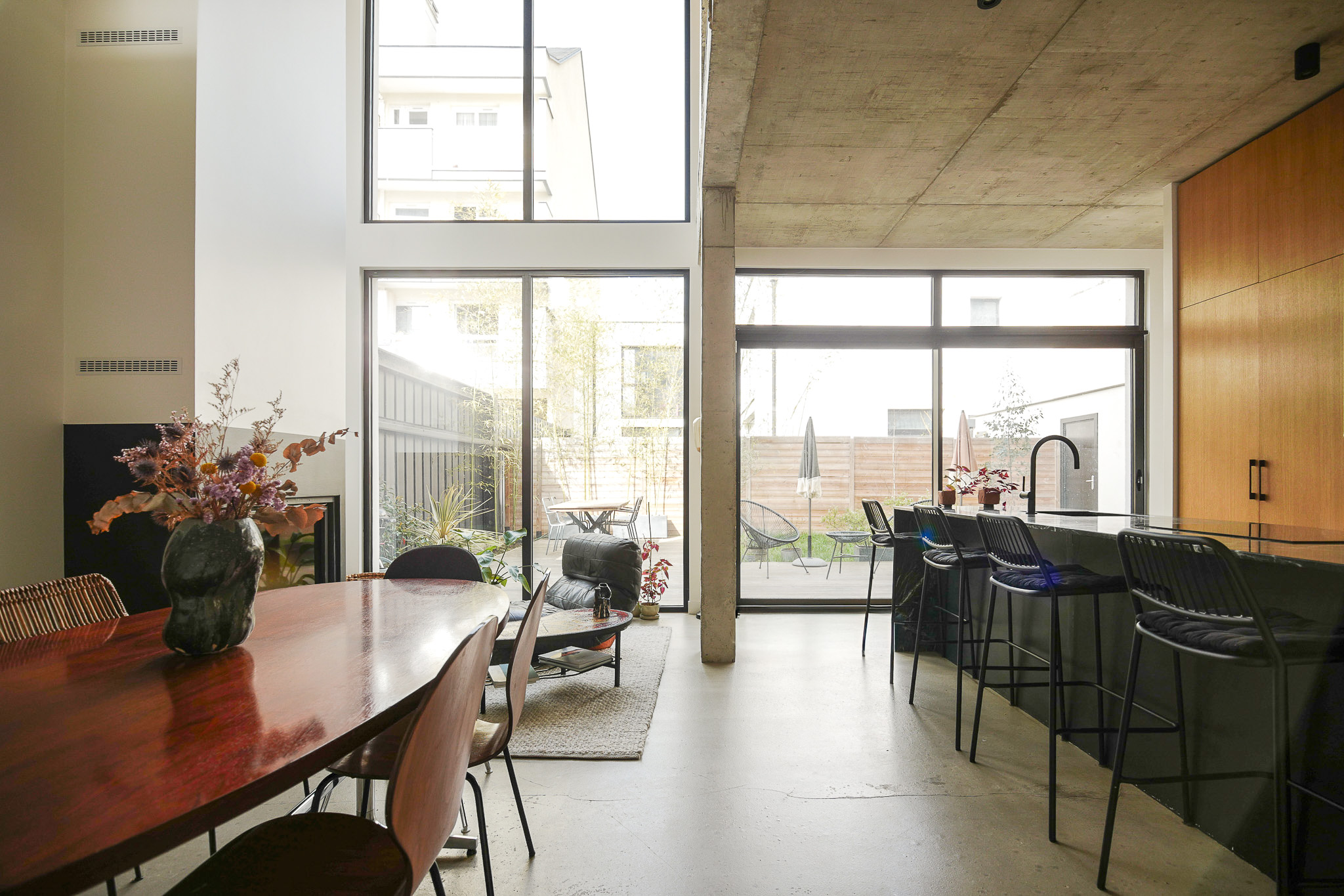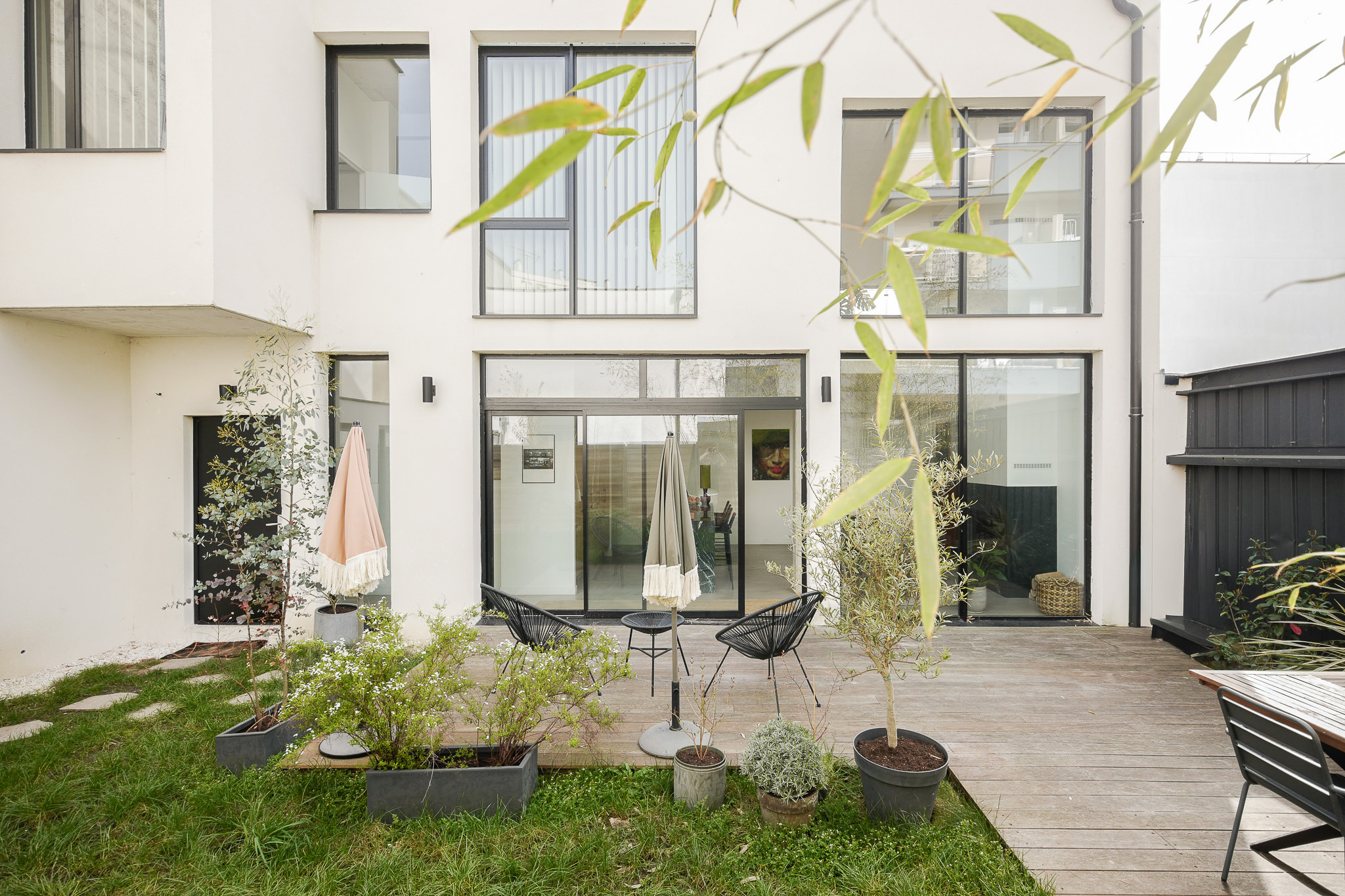 MAISON CONTEMPORAINE AVEC JARDIN ENTRÉE DOUBLE ESPACE DE VIE AU RDC ET AU 1ER ÉTAGE CUISINE OUVERTE 3 CHAMBRES 2 Salles de douche 2 toilettes indépendantes 150.10 M2 CARREZ 159.80 M2 AU SOL + 77.70 M2 JARDIN + 21.80 M2 TERRASSE CONSTRUCTION DE 2022 3 NIVEAUX MATÉRIAUX BRUTS DOUBLE HAUTEUR SOUS PLAFOND BEAUX VOLUMES (3.30 M ET 3.10 M HSP) CALME LUMINEUX JARDIN TERRASSE AU 2E NIVEAU RATIONALISATION DES ESPACES PETITE COPROPRIÉTÉ (3 MAISONS) CLIMATISATION CHEMINÉE LOCAL VÉLOS SOUS GARANTIE DÉCENNALE FAIBLES CHARGES